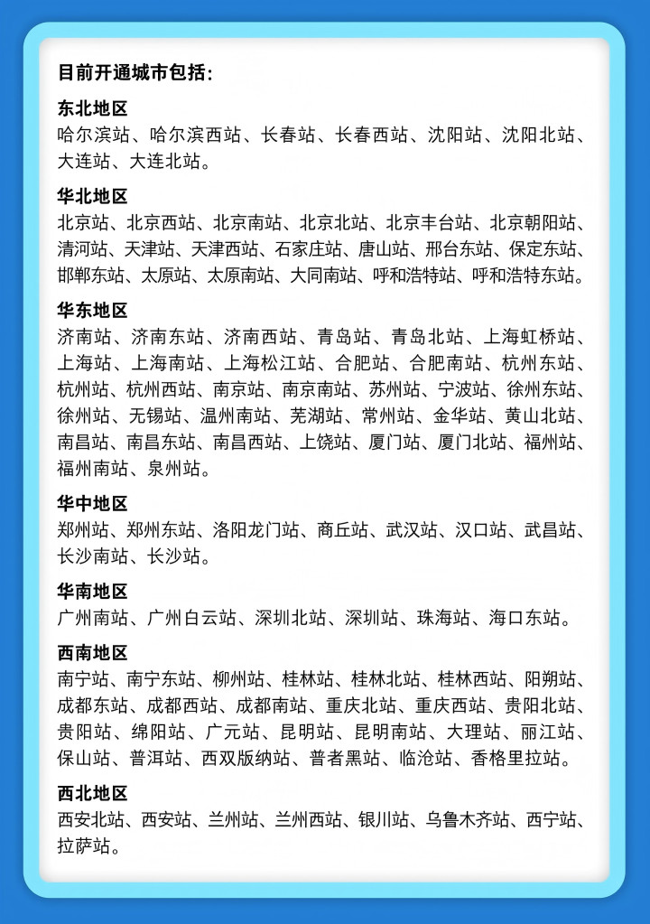 新京报讯据“中铁快运”微信公众号消息,作为2026年春运便民利民服务举措之一,中铁快运自2026年1月15日起扩大“轻装行”服务试点范围,新增哈尔滨、长春、天津、石家庄、西安、南昌、南宁、乌鲁木齐、拉萨等城市的92个车站,总数达到111个,基本覆盖全国省会城市、直辖市、计划单列市,减轻旅客携带大件行李负担牛来了,让乘坐火车出行更轻松。